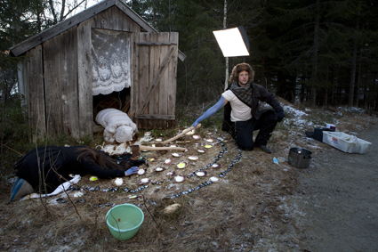 No doubt even the most poetic porn would never revive the faceless corpse to dance & sing (like the Chinese Chaos- bird)--but...imagine a script for a three-minute film set on a mythical isle of runaway children who inhabit ruins of old castles or build totem-huts & junk-assemblage nests--mixture of animation, special-effects, compugraphix & color tape-- edited tight as a fastfood commercial...